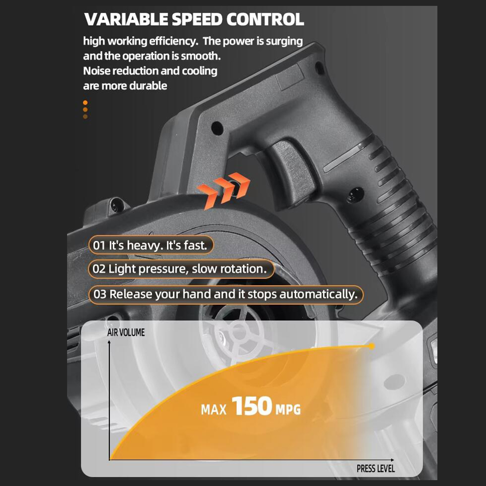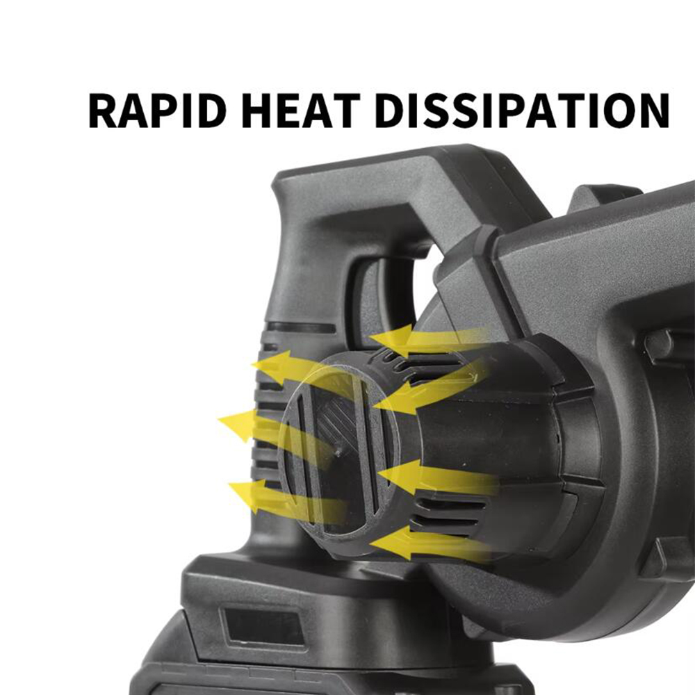 Den industrielle kobbermotor sikrer en jævn luftstrøm med op til 50.000 omdrejninger i minuttet, mens det genopladelige batteri giver fleksibilitet uden ledninger.