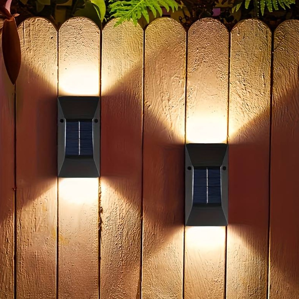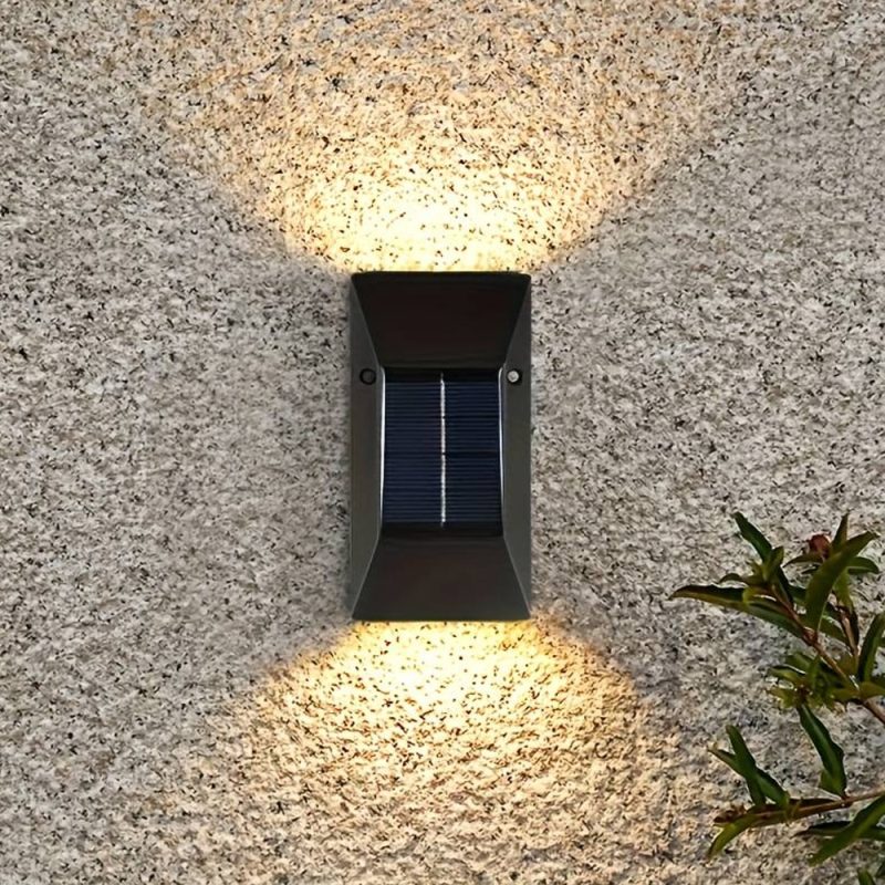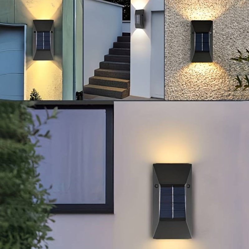 LED væglampe i et lækkert og moderne design med solpanel, hvor solen oplader batteriet om dagen og lyser med en smuk belysningseffekt i mørket, både sommer og vinter.