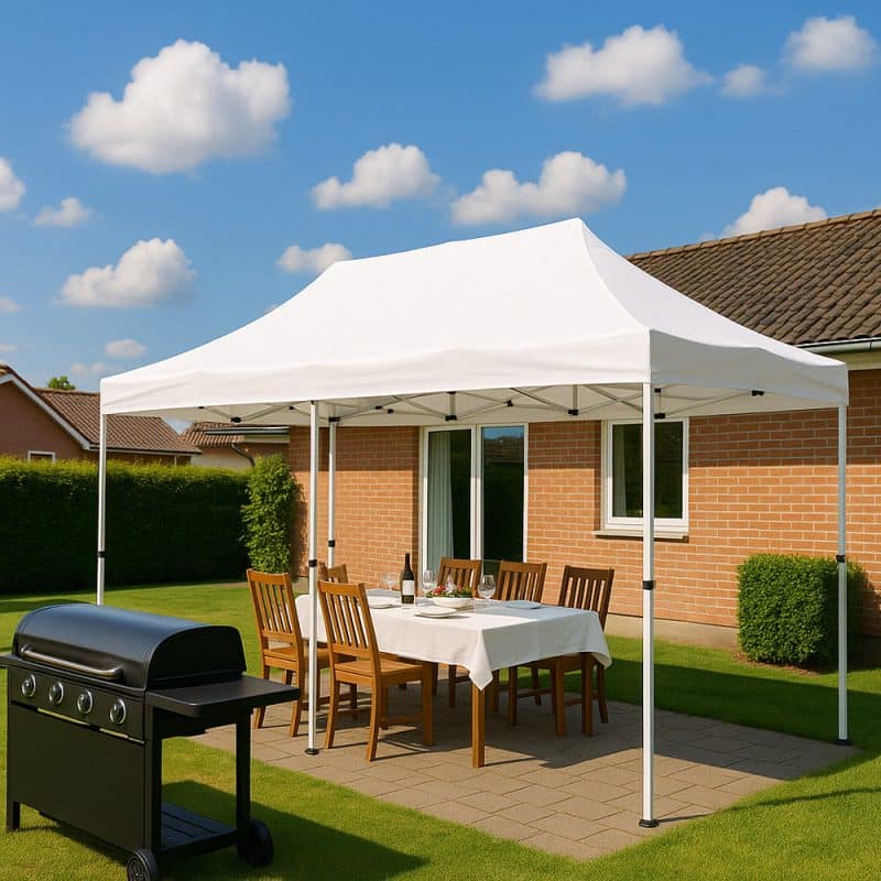 Uanset om du skal holde havefest, dække op til konfirmation, arrangere loppemarked eller bare vil have et skønt skyggefuldt fristed på terrassen, så er denne pavillon det oplagte valg. Den giver både læ, skygge og en fantastisk stemning – og så er den pæn nok til at stå fremme hele sommeren!