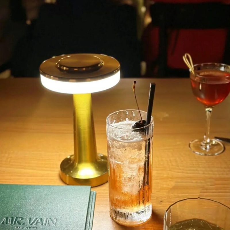 Tilføj stil og funktionalitet til dit hjem eller restaurant med denne elegante, bærbare touch LED bordlampe. Lampen er designet med et moderne look i guldfarvet smedejern og ABS, hvilket gør den perfekt til såvel hjemmet som professionelle omgivelser.